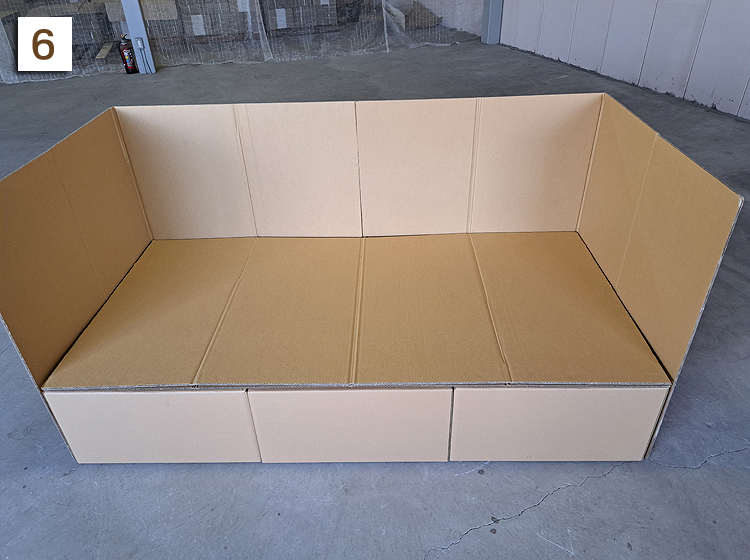並べた台ケースの上に天板シート2枚敷き完成です(残り2枚はパーテーションに使用します)